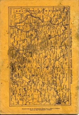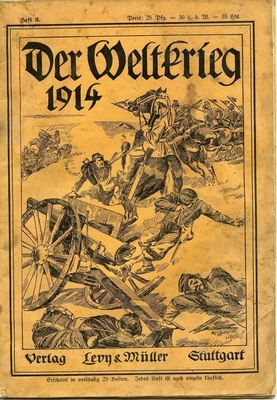 Die Zeitschrift "Der Weltkrieg 1914" enthält die Kriegschronik vom 28. Juni 1914 bis zum 31. August 1914. Heft 2 mit S. 33-64, Preis: 25 Pfg. Auf der Vorderseite ist die Zeichnung einer Kriegsszene abgebildet, rückseitig ist die Karte des Kampfgebietes Luneville-Maubeuge-Paris zu sehen. Inhaltlich sind Kriegsgedichte mit patriotischen Aussagen und Berichte über das kürzliche Kriegsgeschehen zu lesen. Zur Veranschaulichung dienen Fotografien und Zeichnungen.