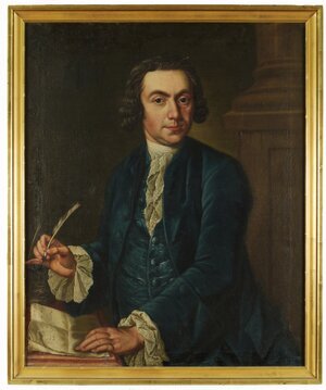 Porträtgemälde des George Walter (19.12.1741 Meisenthal, + 20.01.1823 Götzenbrück) in seinem 81. Lebensjahr. Das Gemälde stammt von dem hauptsächlich in Mannheim wirkenden Maler Johann Schlesinger. Der Porträtierte George Walter starb im Jahr 1823. Das Porträt ist im Jahr zuvor entstanden. Walter trägt im Bild eine braune Jacke, ein schwarzes, geknöpftes Wams und darunter ein weißes Hemd mit schwarzem Halstuch. Sein mittellanges, weißes Haar ist schütter. Der Porträtierte schaut den Betrachter aus offenen, wachen, braunen Augen an. George Walter stammte aus dem lothringischen Meisenthal. Er hat eine genealogische Chronik seiner Familie hinterlassen, die ihn als Spross einer alten Glasmacherdynastie im Kanton Bitche ausweist. Im Internet finden sich weitere genealogische Spuren bis hin zum letzten Haus des George Walter in Götzenbruck, das am Ende des Zweiten Weltkrieges zerstört wurde. Das Gemälde wurde (sekundär) mit einem zeitgenössischen Biedermeierrahmen versehen. Es zeigt starkes Craquelé und war wohl ursprünglich für einen ovalen Rahmen gedacht. [Ludger Tekampe]