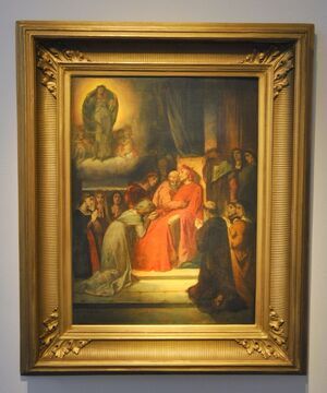 "...endlich ein Porträt des schönsten Kindes in Rom, der kleinen Giacinta Neri in ein einer grünen Laube mit Federhütchen, ganze Figur. Dies Alles ist die Frucht meines schönen Ateliers und kommt im Februar in die Ausstellung", schreibt Feuerbach (Vermächtnis 1885, S. 94). Feuerbach gibt das Gesicht des Mädchens in weicher Modellierung. Er arbeitet die Gestalt in einer subtilen Lichtregie des Atelierlichtes plastisch heraus. Eine besondere Akzentuierung und Plastizität erfährt das Gemälde durch das rosafarbene Kleid, das eine rote Hutfeder nochmals aufnimmt. Das vornehm gekleidete Mädchen mit dem Springseil, als Attribut ihrer kindlichen Lebenswelt in der Hand, stammt aus der römischen Bildhauerfamilie Neri. Das Bild zeigt verschiedene Maltechniken: Lasur- und Primamalerei mit einigen Übermalungen neben pastosen Akzenten und erinnert stilistisch noch an Feuerbachs Aufenthalt bei Couture in Paris. Bezeichnet unten rechts °A. Feuerbach. 1858°. Zu Feuerbach siehe https://de.wikipedia.org/wiki/Anselm_Feuerbach