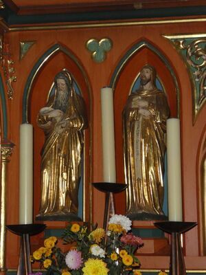 Der barfüßig dargestellte Prophet Jesaja trägt einen bis zur Brust reichenden, lockigen Vollbart, der in der Mitte geteilt ist. Er ist in ein bodenlanges Gewand und einen darüber geworfenen, faltenreichen Übermantel gekleidet. Der Überwurf bedeckt den Kopf wie ein Schal und ist vorne nach oben gerafft. Mit beiden Händen hält er eine Schriftrolle. Der Kopf ist zum Lesen leicht nach vorne geneigt. Die Schriftrolle ist ein Attribut des Propheten Jesaja. In Holz gefertigt und bunt bemalt steht die Skulptur in der Kirche St. Marien in Neustadt an der Weinstraße.