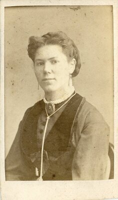 Es handelt sich um ein Halbfigurenbildnis einer jungen Dame, die im 3/4 Profil nach rechts gedreht ist. Die Dame ist mit einem weißen, bunt geblümten Kleid, mit einem weißen Fichu und zinnoberroter Schleife und Haube bekleidet.