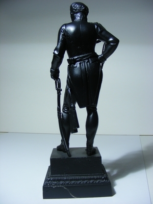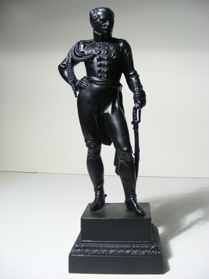 Statuette in Eisenguss geschwärzt des Feldmarschalls Gebhard Leberecht Blücher, Fürst von Wahlstatt (1742-1819) auf einem zweitreppigen Sockel, in der Mitte umsäumt von einem Akanthusfries. Die Statuette zeigt Blücher in Uniform stehend und mit der linken Hand aufgestützt auf einen Säbel. Vgl. 9.050