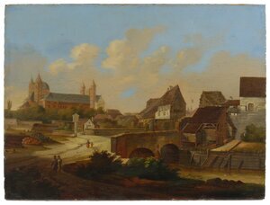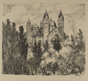 Heinrich IV. starb am 7. August 1106 in Lüttich. Heinrich V. ließ den Leichnam am 24. August nach Speyer überführen, um ihn dort im Dom bestatten. Gebhard, der Bischof von Speyer, verbot jedoch Begräbnis und Begräbnisfeierlichkeiten. So fand der Kaiser seine vorläufige Ruhestätte in einer ungeweihten, an den Dom angebauten Kapelle, der späteren Afrakapelle. Provenienz: Das Gemälde wurde 1861 von Ludwig Rosenfelder in Königsberg (Ostpreußen) gemalt, es gelangte danach ins Wallraff-Richartz-Museum nach Köln, seit 1941 befand es sich in Privatbesitz. Rosenfelder besuchte von 1832 bis 1836 die Preußische Akademie der Künste in Berlin und war ein Schüler Wilhelm Hensels und Wilhelm Ternites. Im Jahre 1841 wurde seinem Atelier der Verein Berliner Künstler gegründet. Im Jahr 1845 wurde er Gründungsdirektor der Kunstakademie Königsberg. Dieses Amt bekleidete er bis 1874. Ludwig Rosenfelder malte zahlreiche religiöse und historische Gemälde