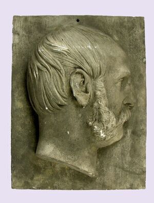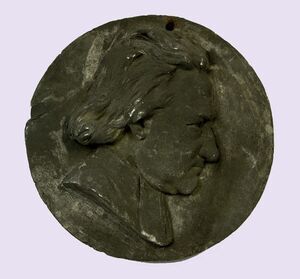 Das Medaillon ist konkav nach innen gewölbt. Es hat einen breiten Zierrand. In der Mitte ist das Halbrelief des sterbenden Jesus, dargestellt mit kurzem, welligem Vollbart. Auf dem schulterlangen, welligen Haar trägt er eine Dornenkrone. Der Kopf ist etwas nach links geneigt. Die Augen sind geschlossen, der Mund ist leicht geöffnet. Um den Hals trägt er ein Tuch, das über der Brust geknotet ist.