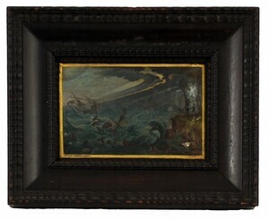 Verusacht durch einen Gewittersturm geraten mehrere Schiffe in Seenot. Während zwi Schiffe noch gegen die Elementargewalten kämpfen, ist ein Schiffer bereits untergegangen. Einige Seeleute konnte sich bereits an die Küste retten, während andere noch zwischen Wellen, Holzplanken und bedrohlichen Meerestieren um ihr Leben kämpfen. Die Miniatur wurde als Gouache auf Pergament ausgeführt. Auf dem Goldrand unten links findet sich die Signatur des Künstlers: 'Jo.Jacob.Besserer 1644'. Besserer wurde um 1600 in Speyer geboren und kam um 1640 zur Zeit des Dreissigjährigen Krieges nach Straßburg, wo er das Bürgerrecht erhielt und im Alter von 57 Jahren gestorben ist. Er verfügte wohl um gute Verbindungen zu Straßburger Sammlern aus dem reichen Bürgertum der Stadt. Darüber hinaus hielt er Kontakt zu dem Künsterkreis um Friedrich Brentel.