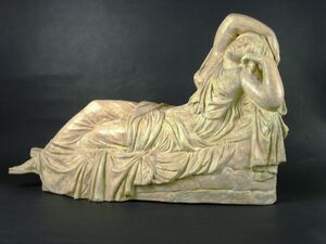 Relief einer Frauengruppe. Drei Frauen stehen auf einem Podest oder einer Art Treppe. Die Frau, vom Betrachter aus gesehen, links, steht leicht seitlich und mit vor der Brust verschränkten Armen. Ihr Gewand ist größtenteils von einem weiten, faltenreichen, Umhang verdeckt. Dieser Umhang verhüllt auch ihren Kopf, lässt das Gesicht aber frei. Ihren Kopf neigt sie nach vorne. Die Frau in der Mitte ist in gebückter, fast knieender Haltung. Sie trägt ein faltenreiches Gewand und einen locker um den Oberkörper drapierten Mantel. Ihr Kopf ist unbedeckt und das leicht gelockte Haar offen. Ihre Hände sind aufeinandergelegt und mit den Armen stützt sie sich leicht auf den Knien ab. Ihr Kopf ist geneigt und sie blickt seitlich nach links unten. Siescheint die jüngste von allen Dreien zu sein. Die Frau ganz rechts steht aufrecht, den Blick nach oben gerichtet. Auch sie trägt ein weites, faltenreiches Gewand mit ebenso faltenreichem Mantel darüber. Ihre Arme hat sie in Bauchhöhe übereinandergelegt. Ihre lockigen Haare reichen nur bis zur Schulter, oder sind im Nacken zusammengebunden. Die Köpfe aller drei Frauen sind von einem Heiligenschein umgeben.