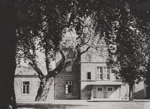 Schwarzweißfotografie. Das Bild zeigt das im Jahre 1845 erbaute ehemalige Casino in Bendorf. Es handelt sich um eine Aufnahme der Hofseite um das Jahr 1938/39. Die Mitglieder der 1823 gegründeten Casinogesellschaft gehörten der Oberschicht an. 1933 wurde die Casino-Gesellschaft von den Nationalsozialisten verboten.