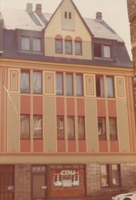 Drei Farbfotografien (7.0438 a-c), Bachstraße in Bendorf. Die Geschäftsstelle der CDU im Mai 1977. Foto: H. Dreyer (3 Fotos)