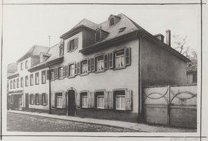 Schwarzweißfotografie. Die Aufnahme von 1927/28 zeigt das Haus Fries in der Oberen Bachstraße in Bendorf. Das Haus wurde um 1750 erbaut von der Familie Remy. Von 1880 bis 1888 war dort das Bürgermeisteramt untergebracht.