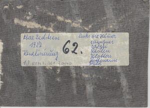 Schwarzweißfotografie. Die Aufnahme zeigt einen Blick in die Obere Bachstraße in Bendorf, während der Bauarbeiten zur Kanalisierung des Baches 1927. Die Häuser links gehörten den Familien Mangner, Raulen, Klotten und Rothmann.