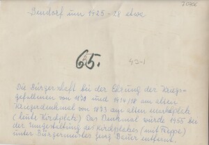 Schwarzweißfotografie. Bendorf um 1925 bis 1928. Die Bürgerschaft bei der Ehrung der Kriegsgefallenen von 1870 und 1914/18 am alten Kriegerdenkmal von 1873 am alten Marktplatz (heute Kirchplatz) in Bendorf. Das Denkmal wurde 1955 bei der Umgestaltung des Kirchplatzes (mit Treppe) unter Bürgermeister Georg Bauer entfernt. Der gusseiserne Adler des Denkmals befindet sich heute im Bestand des Rheinischen Eisenkunstguss-Museum. Die Säule des Denkmals steht auf dem Friedhof in Bendorf.