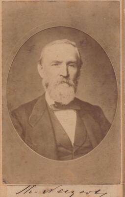 Schwarzweißfotografie, sog. Carte-de-Visite. Portrait von Theodor Neizert (1817-1883), einem Fabrikanten in Bendorf. Er gründete im Jahr 1842 die Fabrik für "Feuerfeste Steine" (später Didier-Werke und Gebr. Lüngen). Sein Enkel war der berühmte Archäologe Theodor Wiegand, Ehrenbürger der Stadt Bendorf, nach dem eine Straße benannt wurde. Theodor Neizert hatte zuerst eine Kalk-und Ziegelbrennerei aufgebaut und stellt ab 1861 Schamottsteine her. Aus dieser Fabrik ging die Firma "Theodor Neizert & Co" später "Bendorfer Actien-Gesellschaft für Feuerfeste Produkte in Bendorf" hervor, die schließlich in den Firmen Didier und Gebr. Lüngen aufging. Die Firma lag bzw. liegt noch heute an der 1836 erbauten "Sayner Chaussee" (heute Hauptstraße), die Bendorf mit Sayn und dem Westerwald verbindet. Die heutige AS Lüngen GmbH stellt Speiser her und gehört zur ASK Chemicals Group.