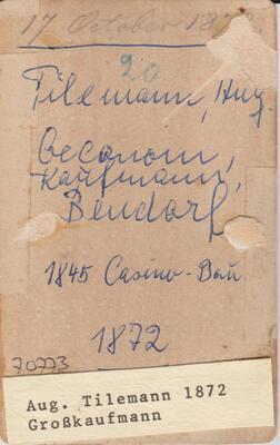 Schwarzweißfotografie, sog. Carte-de-Visite. Portraitfoto von August Tilemann, einem Großkaufmann in Bendorf aufgenommen am 17. Oktober 1872.