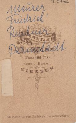 Schwarzweißfotografie, sog. Carte-de-Visite. Portrait von Friedrich Maurer, Rentner.