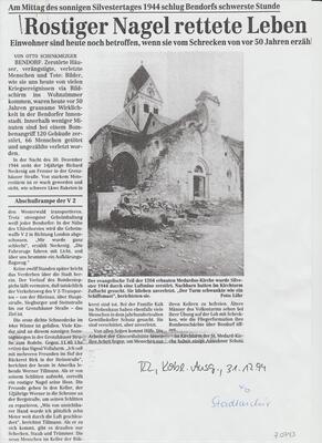 Pressebericht Rhein Zeitung vom 31.12.1994, Bombenangriff auf Bendorf 1944
