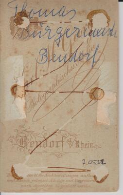Schwarzweißfoto, sog. Carte-de-Visite. Portrait von Joh. Adam Thomas, Bürgermeister in Bendorf 1884-1905. Fotografie von "Karl A. Georg Bendorf a/ Rhein".