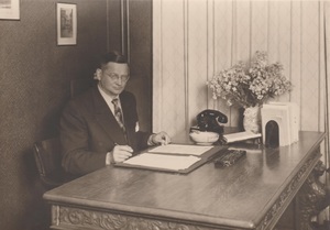 Georg Bauer an seinem Schreibtisch, Bürgermeister 1949-1967