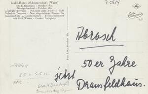 Schwarzweißfotografie als Postkarte. 1950er Jahre. Das Bild zeigt einen Speisesaal des "Hedwig Dransfeld-Hauses" in Bendorf. Es handelt sich um ein Erholungsheim des Katholischen Deutschen Frauenbundes. Die ehemalige Dr. Brosius'sche Anstalt ("Waldesruhe" 1878 gegründet) ging einige Jahre vor dem Ersten Weltkrieg durch Kauf in die Hände des Nervenarztes Dr. Zanke über, welcher größere Umbauten an den Hauptanstaltsgebäuden vornahm und plötzlich an den Folgen eines Unfalls verstarb. Unter seinem Nachfolger Dr. Döllner musste die Anstalt schließen. Die Hauptgebäude an der Hauptstraße gelangten durch Kauf in den Besitz der Bendorfer Getreidefirma Simon Abraham. Das schöne Besitztum Waldesruh kam nach mehrmaligem Besitzwechsel in die Hände des Kaufmanns E. Rezepka, der es mit erheblichen Kosten zu einem Erholungshaus ausbaute. Von diesem erwarben es die Jesuitenpatres. Nach Aufhebung der Niederlassung derselben kaufte es der Katholische Deutsche Frauenbund und wandelte es zu einem Frauen-Erholungsheim um. Zu Ehren der 1925 verstorbenen Frauenrechtlerin Hedwig Dransfeld wurde es im Jahre 1925 in "Hedwig Dransfeld-Haus" umbenannt. Seit dem Jahre 2008 befindet sich auf dem Anwesen das "Hotel friends".