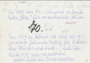 Schwarzweißfotografie. Dieses Foto wurde von der Straßenseite aufgenommen und zeigt das "Johannes-Kolleg" bzw. die ehemalige Kurvilla "Flora" um 1930 mit Baumallee, Freitreppe und Haupteingang. Die von Dr. Georg Colmant (1834-1897) um 1870-71 gegründete Kur- und Nervenheilanstalt im Andorf war nur weiblichen Patienten vorbehalten. Durch die günstige Entwicklung des Unternehmens wurde 1890 durch den Bau der "Villa Flora" an der Sayner Chaussee - heute Hauptstraße - mit schönen Parkanlagen, eine wesentliche Vergrößerung vorgenommen. Die Colmant'schen Anstalten schlossen kurz nach dem 1. Weltkrieg. Die sog. Villa Flora, von einer Ordensgenossenschaft erworben, wurde im Anschluss als Missions-Seminar unter dem Namen "Johannes-Kolleg" genutzt, von wo Missionare in alle Welt geschickt wurden. Nach deren Wegzug Mitte der 1930er Jahre, diente das Gebäude als Waisenhaus und später als Altersheim der Stadt Koblenz. Schon lange im Besitz der Didier-Werke, Bendorf, wohnten zuletzt hier Gastarbeiter. Im Jahre 1998 abgebrochen wurde die Grundstücksfläche als Teilfläche beim Bau eines großen Einkaufszentrums integriert.