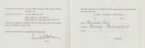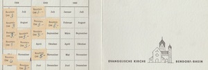Die evangelische Medardus-Kirche von 1204 wurde im zweiten Weltkrieg während eines Luftangriffs am 31.12.1944 stark beschädigt. Die zum Kirchplatz hin orientierte Fassade und das Dach wurden abgebrochen und in den 1950er Jahren wieder neu aufgebaut. Die Bürger der Stadt Bendorf konnten sich mit Spenden am Wiederaufbau beteiligen und sogenannte Bausteine zu verschiedenen Werten kaufen. Zu sehen ist hier ein Spendenheft des Bauunternehmers Heinrich Giess aus den Jahren 1958 bis 1960.