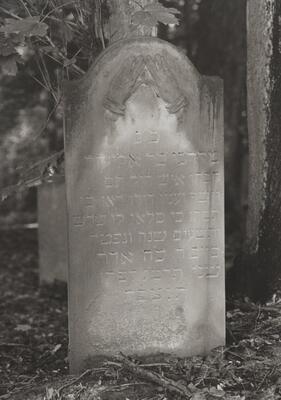 Schwarzweißfotografie. Dieses Bild zeigt die achte Treppenstufe des im Jahre 1913 entstandenen Aufganges zum jüdischen Friedhof in Bendorf. Der Jüdische Friedhof in Bendorf wurde um das Jahr 1700 angelegt. Er liegt östlich der Stadt im Wenigerbachtal und ist ein geschütztes Kulturdenkmal. Der Friedhof wurde in der Zeit des Nationalsozialismus und auch im Jahr 1999 geschändet. Auf dem 7032 m² großen Friedhof sind noch 116 Grabsteine erhalten. Auf dieser Treppenstufe befindet sich aus Steinen gelegt das jüdische Abstammungssymbol, die "segnenden Priesterhände". Sie gehören zu den häufigsten Symbolen und stehen für die Abstammung von den Geschlechtern der Kohanim und der Leviten. Die segnenden Hände sind auf das aaronitische Priestergeschlecht aus Num 6,22-26 zurückzuführen. Bei diesem Segen, der bis heute noch in der Synagoge üblich ist, berühren sich Ring- und Mittelfinger nicht. Auf dieses Symbol trifft man bei Angehörigen des Priestergeschlechtes. Die Zugehörigkeit des Priesterstammes wird patrilinear vererbt, deshalb ist dieses Symbol bei Frauen eher seltener anzutreffen.