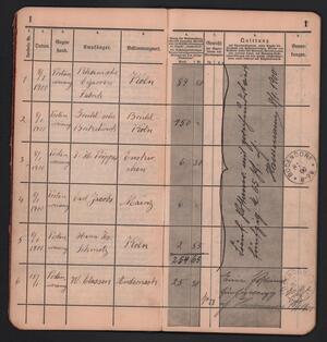 Posteinlieferungsbuch für zur Post eingelieferten Wert-, Einschreiben, Postanweisungen und Postnachnahmesendungen der Kaiserlichen Post. Ausgestellt und geführt von der Firma Peter Josef Cholin (Gastronomie und Weinbau) am 06. Januar 1900 und geführt bis 29. 12. 1904. Brauner Kartoneinband mit Stoff verstärktem Buchrücken. Innen pro Seite sechs Zeilen vorgedrucktes Formular mit handschriftlichen Eintragungen und Posteinlieferungsstempel.