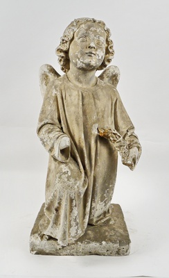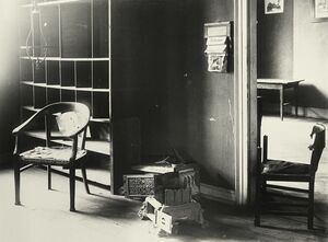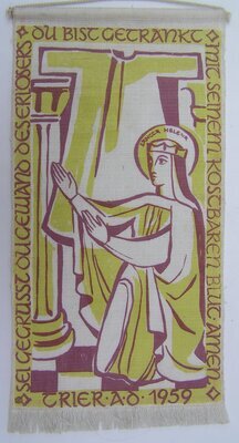 Vorlage zur Domausmalung. Vor den Stufen des Hauptaltars im Speyerer Dom betet der Heilige zum "Speyerer Gnadenbild"; der Beschauer blickt von Süd nach Nord auf die nördliche Hochschiffwand (2Pfeiler mit Durchblick in Seitenschiff). Der Heilige kniet nach Osten, also nach rechts; hinter ihm knien zwei Mönche in weißen Kutten. Im Vordergrund kniet ein Bischof, dahinter steht noch einer. Abschließend gibt es nach links bewaffnete Ritter.