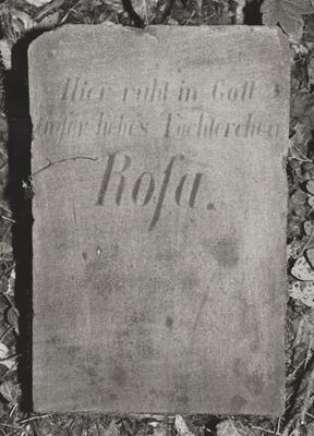 Schwarzweißfotografie. Dieses Bild zeigt den Grabstein eines Kindes auf dem jüdischen Friedhof in Bendorf. Der Stein enthält folgende in Stein gemeißelte Inschrift: "Hier ruht unser lieb. Kind Helene Frank geb. d. 8. März 1901 gest. d. 19. Juni 1901 Ruhe sanft!" Der Jüdische Friedhof in Bendorf wurde um das Jahr 1700 angelegt. Er liegt östlich der Stadt im Wenigerbachtal und ist ein geschütztes Kulturdenkmal. Der Friedhof wurde in der Zeit des Nationalsozialismus sowie im Jahr 1999 geschändet. Auf dem 7032 m² großen Friedhof sind noch 116 Grabsteine erhalten.