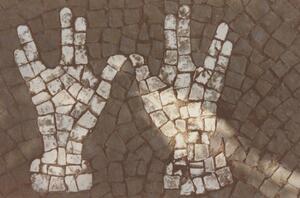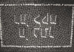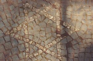 Farbfotografie. Detailansicht. Dieses Bild zeigt eine Detailaufnahme der dritten Treppenstufe (vgl. Inv. Nr. 7.1085) des im Jahre 1913 angelegten Treppenaufganges zum jüdischen Friedhof in Bendorf. Auf dieser Treppenstufe wurde eine Sanduhr, als Symbol für die Vergänglichkeit, in Mosaiktechnik aus weißen Steinen verlegt. Der Jüdische Friedhof in Bendorf wurde um das Jahr 1700 angelegt. Er liegt östlich der Stadt im Wenigerbachtal und ist ein geschütztes Kulturdenkmal. Der Friedhof wurde in der Zeit des Nationalsozialismus und auch im Jahr 1999 geschändet. Auf dem 7032 m² großen Friedhof sind noch 116 Grabsteine erhalten.