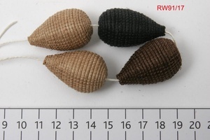 Die Perlen wurden zur Erstellung von Ketten bestellt, allerdings wurden nicht alle verarbeitet. Es handelt sich um tropfenförmige geflochtene Perlen aus Sisal in den Farben Natur, Rot, Braun, Schwarz und Pink.