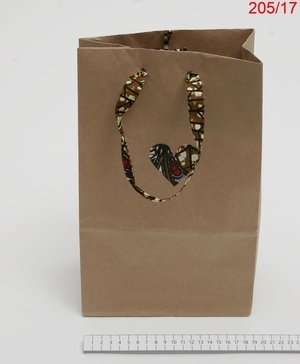 Das Kleid ist für ein kleines Mädchen gedacht. Es ist knielang, schulterfrei und hat einen Rundhalsausschnitt. Der Faltenrock ist weit ausgestellt. Das Kleid hat auf der Rückseite einen rosafarbenen Reißverschluss. Der Stoff zeigt eine geschwungene Pflanze mit türkiser Blüte und türkis-rosafarbenen Blättern. Der Stiel ist schwarz. Der Hindergrund ist überwiegend rosa mit schwarzen Wellenlinien. Es gibt jedoch auch einige große schwarze Kreise die im inneren ein Muster aus weißen Kreisen und darum einen Kreis aus kleineren weißen Kreisen zeigen. Hinten klebt ein Aufkleber mit der Aufschrift "2 y" (vermutlich für: 2 years). Innen ist ein Schild: Vorderseite: Logo (Umutima Handmade with Love in Rwanda) sowie handschriftlich der Preis: 15.000 rwf (2y) Auf der Rückseite: Umutima is a women´s cooperative based in Kigali, Rwanda Umutima was created in 2013 by Nyamirambo Women´s Center to help women earn a fair wage and to generate income for the center that provides free education for the community and promotes gender equality and women´s rights in Rwanda. www.nwc-kigali.org or visit our facebook page (Nyamirambo Women´s Center).