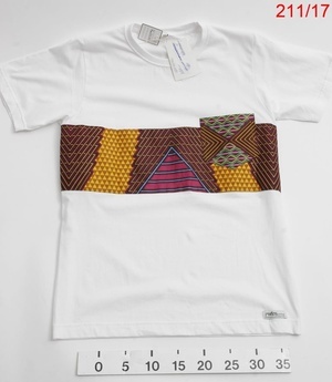 Rwanda Clothing wurde 2012 von Designerin Joselyne Umutoniwase und ihrem Mann Roman Schulz in Kigali gegründet. Eine erste Präsentation der Mode gab es im Wettbewerb HEAP 2012, für kreative Designer und Kunstschaffende: Gesamtsieg in der Kategorie Fashion. Begründung: Kleidung, „die modernes, internationales Fashiondesign zum Vorbild habe, aber trotzdem Wurzeln und Traditionen der ruandischen Kleidungsweise deutlich erkennen ließe“ (Schulz 213:16). Lob gab es auch für den Anspruch, Kunst und Kultur mit Kleidung zu kombinieren (Schulz 2013: 15f) Das Kleid wurde aus der Kollektion von 2015 nachgearbeitet, diese Kollektion war vom Kunsthandwerk inspiriert. Das Kleid ist besteht aus fünf verschiedenen Stoffen. Zum einen Kitenge, einem sehr hellen gelb oder beige, welches mit einem blauen Wabenmuster bedruckt ist. Dazu kommen große gelb-rote Blüten auf dunkelblauem Grund. Diese sind in einer Reihe durch große blaue Punkte verbunden. Um das Muster herum wurde noch gelbe Farbe aufgedruckt. Dazu kommt außen dunkelblauer und roter Stoff, innen ein weicher grauer Stoff und ein Unterkleid in Blau. Von hinten ist das knielange Kleid etwa bis zur Mitte des Rückens ausgeschnitten und hat insgesamt 6 Träger, drei auf jeder Seite. Diese kreuzen sich in einem Webmuster. Man sieht von hinten nur den Kitengestoff. Ein Reißverschluss geht etwa bis zum Po. Vorne ist in der Mitte ein rotes Dreieck vom Rundhalsausschnitt bis zum Bauch und dann wieder bis zum Ende des Kleides. Diese Dreiecke sind innen mit einem weichen grauen Stoff unterfüttert. Darüber sind Streifen aus dem Kitengestoff. Der Rest der Vorderseite ist dunkelblau, bs auf Abhäher aus Kitengestoff und die obere Seite, die aus dem Kitengestoff ist (von den Achselhöhlen aufwärts). Der Übergang zwischen Vorder- und Hinterseite des Kleides ist so gestaltet, dass unten Kitenge ist, dann ein Stück roter Stoff und oben wieder dunkelblauer. Die Träger sind wurden vorn alle zusammen angenäht. Das Etikett trägt den Schriftzug: Rwandaclothing Rwandaclothing.com Made in Rwanda