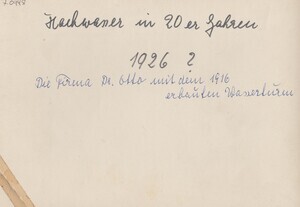 Schwarzweißfotografie. Diese Aufnahme zeigt die 1913 gegründete Firma "Dr. C. Otto & Comp. im Bendorfer Rheinhafen während des Hochwassers im Jahr 1926. Ganz rechts im Bild sichtbar ist der im Jahre 1916 erbaute Wasserturm des Werkes, der zu einem Wahrzeichen der Stadt Bendorf geworden ist. Der Rhein und der nahe gelegene Westerwald mit seinen reichen Vorkommen an Ton und Quarzit waren Gründe dafür, dass die Firma Dr. C. Otto & Comp. GmbH Bochum, ein Spezialunternehmen für den Bau von Kokerei- und Kohleveredelungsanlagen den Entschluss fasste, eine Produktionsstätte für feuerfeste Erzeugnisse in Bendorf zu errichten. In zweijähriger Bauzeit entstand unmittelbar am Rhein das Werk zur Herstellung von "Silikat-Stein", der im Koksofenbau und in der Stahl- und Glasindustrie verwendet wurde. Nach der wirtschaftlichen Krisenzeit der 1930er Jahre, stellt man auf neue Produkte und schuf sich einen Absatzmarkt im Ausland. Nach dem Zweiten Weltkrieg hielt der sog. Säurebau im Werk Einzug. Das heißt man kleidete beton-keramische Behälter mit säurefestem Material aus. 1951 wurde die Fertigung von Kunststoffteilen aufgenommen. Zuletzt hatte man sich auf die Produktion von feuerfesten Steinen bzw. Isoliersteine auf Naphthalonbasis spezialisiert und bezog den Ton aus Melsbach (bei Neuwied) und Holzhausen (Kreis Wetzlar). Die Bahn war wichtigstes Transportmittel zu den Nordseehäfen. Das Werk Bendorf war bis zu seinem Untergang in den 1980er Jahren eine der Säulen der Bendorfer Industrie. Der hoch ragende Wasserturm der Firma Dr. Otto ist bis heute noch in Hafennähe erhalten geblieben.