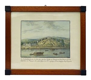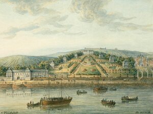 Bildunterschrift: "Der Kurfürstliche Garten, die Favorite, nahe dem Neuthor zu Mainz, von Lothar Franz von Schönborn, Kurfürsten von Mainz, in den ersten Jahren von 1700 angelegt. - In dem französischen Krieg 1793 zerstört" Das Lustschloss "Favorite" mit barocker Parkanlage wurde ab 1700 von Kurfürst Lothar Franz von Schönborn angelegt und 1793 bei der Belagerung von Mainz zerstört. Auf einem Teil des Geländes befindet sich der heutige Stadtpark.
