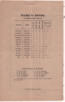 Doppelseitig bedrucktes Formular. Auf der Vorderseiten bedruckt steht das Rechnungsjahr un die Modalitäten wie die Steuerzahlung fällig ist. Die Innenseite ist als Journal aufgebaut, in dem der Name des Steuerpflichtigen und die Nummer des Kontobuches alle Steuerarten aufgeführt sind. Die zu zahlende Steuerart und Höhe ist handschriftlich näher bezeichnet. Auf der Rückseite stehen die Steuertermine ein gedruckt, so wie die Öffnungszeiten des dem Kreis Ahrweiler angegliederten Kreis Altenahr.