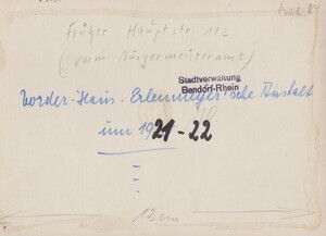 Schwarzweißfotografie. Diese Aufnahme entstand im Jahr 1921/22 und zeigt das Vorderhaus der 1848 gegründeten Dr. Erlenmeyer'schen Heilanstalten für Gemüts- und Nervenkranke mit den davor angelegten Parkanlagen. Die gesamte Gebäudereihe wurde bei einem Luftangriff im zweiten Weltkrieg am 31.12.1944 bis auf die Grundmauern zerstört. Der ehemalige Anstaltspark des Sanatoriums ist der heutige Stadtpark im Zentrum der Stadt Bendorf. Im Jahre 1922 gingen alle Gebäude und Anlagen der Heilanstalt an der Hauptstraße in den Besitz der Stadt Bendorf über. Bis heute beherbergen die beiden Rathäuser I und II im Stadtpark (vormals die "Herren- und Damen-Villa" des Sanatoriums) die Stadtverwaltung der Stadt Bendorf.