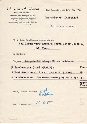 Rechnung für ärztliche Maßnahmen mit Briefumschlag vom 28.9.1955
