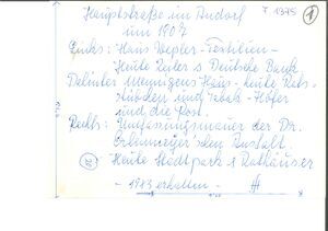 Schwarzweißfotografie. Diese Aufnahme entstand um das Jahr 1907 und zeigt die alte Hauptstraße in Bendorf. Auf der linken Seite ist das ehemalige Haus "Wepler-Textilien" zu erkennen, wo später die Deutsche Bank ansässig war. Die Mauer rechts im Bild umfasste den Park mit Gebäuden der ehemaligen Dr. Erlenmeyer'schen Heilanstalten. Seit dem Jahr 1922 befindet sich an jenem Ort der Stadtpark mit seinen beiden Rathäusern.