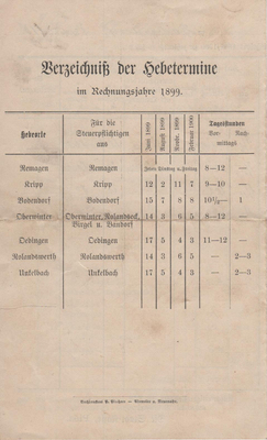Steuerzettel für das Rechnungsjahr 1899 der Königlichen Steuer- und Gemeindekasse Ahrweiler