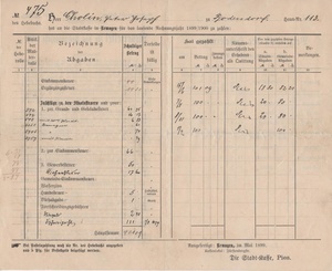 Steuerzettel für das Rechnungsjahr 1899 der Königlichen Steuer- und Gemeindekasse Ahrweiler