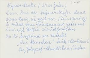 Schwarzweißfotografie. Diese Aufnahme stammt aus den 1920er Jahren und zeigt Bauarbeiter beim Versetzen eines Wohnhauses in der Sayner Straße in Bendorf. Da dieses Wohnhaus der Familie Massing beim Bau der Sayner Straße zu weit vorne stand, wurde es von seinem Fundament getrennt und auf Rollen zurück geschoben. Im Hintergrund erkennbar ist der Distrikt "Am Steinchen", der heute bebaut ist.