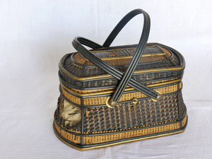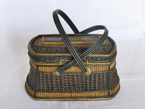1 Nähkästchen der Catharina Senzig geb. Schmitt, um 1880 mit 2 Griffen tragbar, verschiedene Geflechte in verschiedenen Farben, Innen Stoffbezug, Zettel mit Herkunftsnachweis im Inneren. Catharina Senzig wurde am 17. 08. 1837 in Emmersweiler geboren und starb am 22. 07. 1913. Sie heiratete am 14. 02. 1861 in Ludweilder Hector Nikolaus Bergmann.
