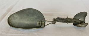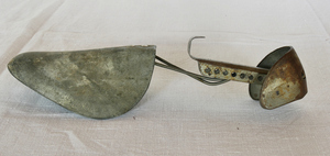 Schuhspanner aus Blech, geprägt, 1930er-Jahre "Schuhspanner" (auch "Schuhstrecker" oder "Spannleisten" genannt) sind das Schuhvorderteil ausfüllende Formstücke, die nach dem Tragen von Schuhen in diese eingelegt werden. Sie dienen der Schuhpflege. - (Wikipedia 26.03.2019)