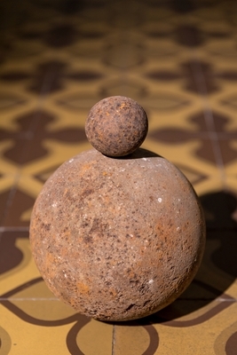 Kanonenkugel in Eisenguss hergestellt in der Sayner Hütte. Auf dem Gelände Sayner Hütte wurde von Einheimischen eine Kanonenkugel mit 6,5 cm Durchmesser vor einigen Jahrzehnten gefunden und gelangte über ein Mitglied des Freundeskreises Sayner Hütte e. V. in den Bestand des Museums. Die1769/70 gegründete Sayner Hütte kam nach den Befreiungskriegen gegen Napoleon und dem Wiener Kongress 1815 in den Besitz des preußischen Staates, der die Eisenhütte zur Geschütz- und Munitionsgießerei ausbaute.