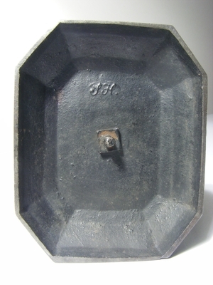 Eisenguss; Leuchter in Form einer knieenden Wasserträgerin auf einer achteckigen Plinthe. Auf der Unterseite des Fußes ist die Gießereimarke "S.H." erkennbar und damit eine direkte Zuordnung zur Sayner Hütte möglich. Das Modell nach einer Zeichnung von Karl Friedrich Schinkel gefertigt wurde sowohl in Gleiwitz als auch in Berlin gegossen. Es handelt sich um eine Leihgabe des Förderkreises Rheinisches Eisenkunstguss-Museum e. V.