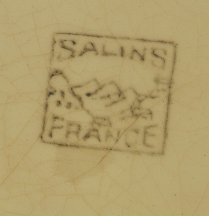 Tiefer Teller mit Blumendekor Firmenstempel auf der Rückseite SALINS FRANCE Dies deutet auf die Herstellung durch eine Manufaktur in SALINS LES BAINS im Frantöischen Jura hin.