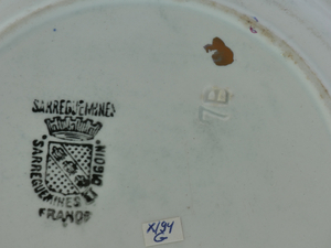 Teller mit Goldrand und Blumendekor Herstellerstempel auf der Rückseite SARREGUEMINES SAREGUEMINES 1 DMGOIN France