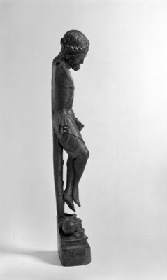 Das ursprünglich farbig gefasste Kruzifix stammt aus dem Hochaltar der Oberweseler Liebfrauenkirche und ist um 1340 entstanden. Es wurde zusammen mit anderen Figuren im späten 19. Jahrhundert aus dem Altar gestohlen und gelangte über den Kunsthandel in das Mainzer Altertums-Museum. Der Altar, der auf der Festtagsseite gotischen Kathedralfenstern nachempfunden ist, ist von hoher künstlerischer Qualität. In den mit filigranem Maßwerk überkrönten Nischen stehen paarweise Apostel und Heilige; in der unteren Reihe wird die Heilsgeschichte und Passion erzählt. Das Kruzifix im Landesmuseum gehört zu der Kreuzigungsszene.