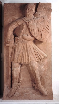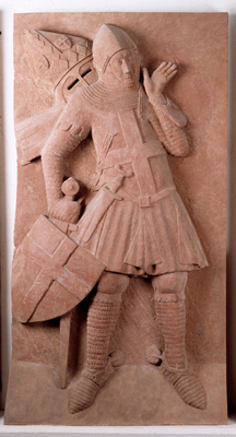Mainz war seit römischer Zeit ein wichtiger Handelsstandort. Zu Beginn des 14. Jahrhunderts wurde das Kaufhaus am Brand errichtet. Reisende Kaufleute mussten dort gemäß einer Mainzer Zollverordnung 3 Tage lang ihre Waren auslegen. König Ludwig der Bayer hatte im Jahr 1317 den Mainzer Bürgern das Recht erteilt, Gebühren für den Handel zu erheben. Das Kaufhaus war an der Frontseite mit einer Zinnenreihe geschmückt, die auf flachen Reliefs die Darstellungen der weltlichen und geistlichen Kurfürsten trugen. Im frühen 19. Jahrhundert wurde das seit 1793 schwer beschädigte Kaufhaus abgebrochen, die Reliefs gelangten in die städtische Sammlung.