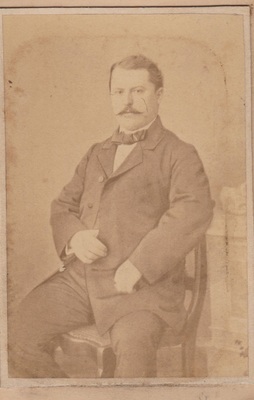 Schwarzweißfotografie. Dieses Portrait aus dem Jahr 1870 zeigt den Bendorfer Fabrikanten Heinrich Remy. Er bewohnte das herrschaftliche Wohnhaus in der Entengasse in Bendorf, das in den 1880er Jahren an die Franziskanerinnen verkauft wurde. Daraufhin entstand dort das alte Bendorfer St. Josef Krankenhaus, das 1962 abgerissen und durch einen Neubau ersetzt wurde. Das Wohnhaus war ursprünglich von Wilhelm Remy (1702-1761), dem Begründer des Eisenhüttenwesens in Bendorf erbaut worden.
